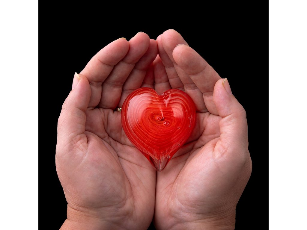 Skleněné červené srdíčko - výška cca 6cm, šířka 6cm