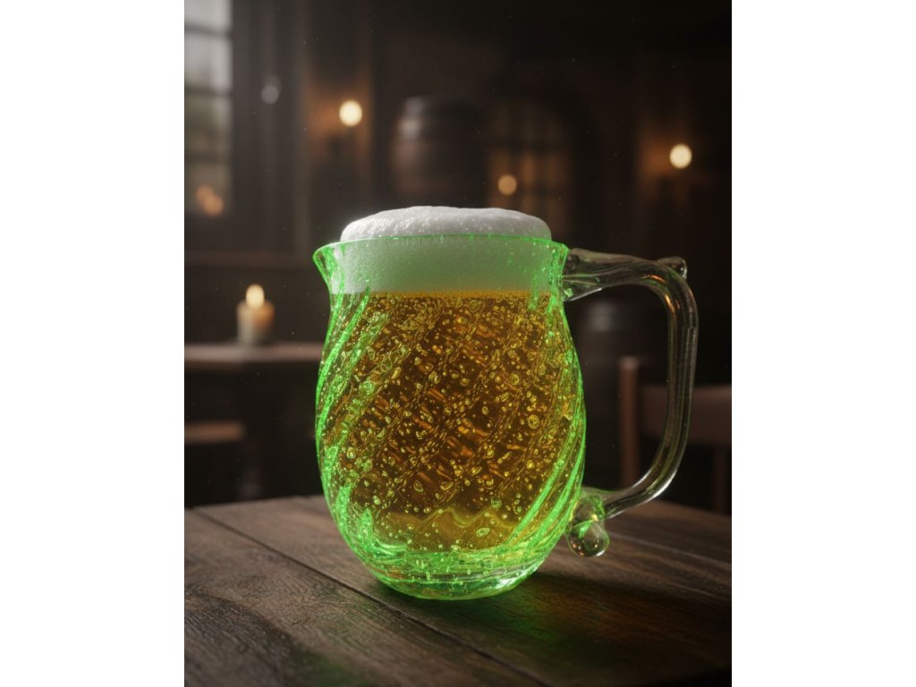 Tento svítící pivní půllitr z ručně foukaného skla obsahuje speciální fluorescenční pigment, který po nasvícení ve tmě zeleně svítí. Originální svítící sklenice na pivo je ideální na párty, grilování nebo jako netradiční dárek pro milovníky piva.