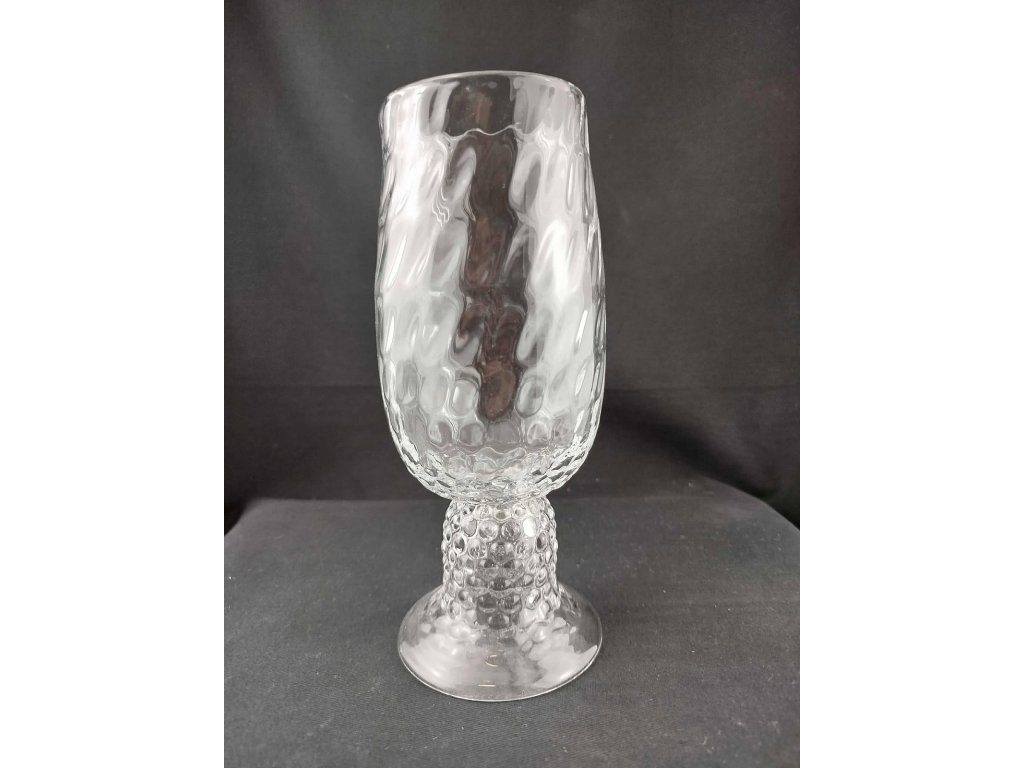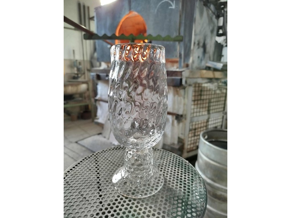 Skleněná číše s optickým vzorem v barvě křišťál. Doprodej kolekce.