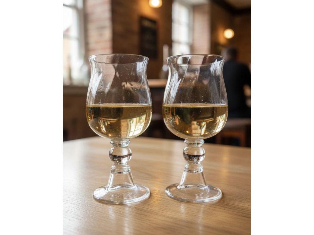 Tento pár je nabízen v doprodeji – jedná se o poslední kusy za zvýhodněnou cenu. Ve skle jsou drobné bublinky.