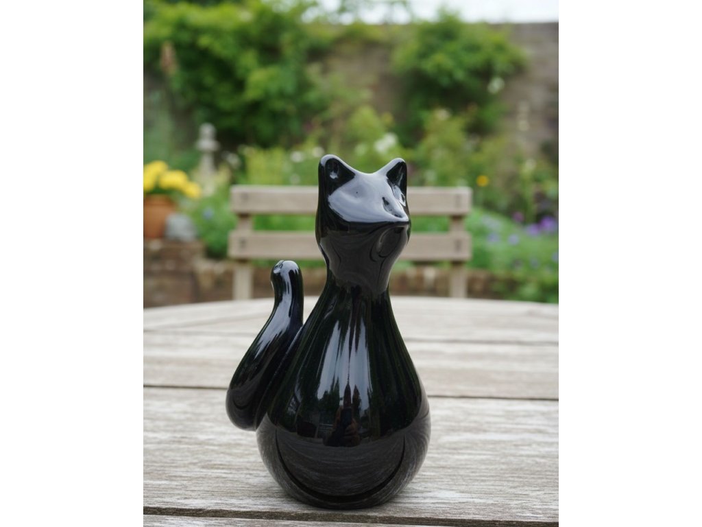 Skleněná, ručně tvarovaná kočička z hutního skla v černé barvě