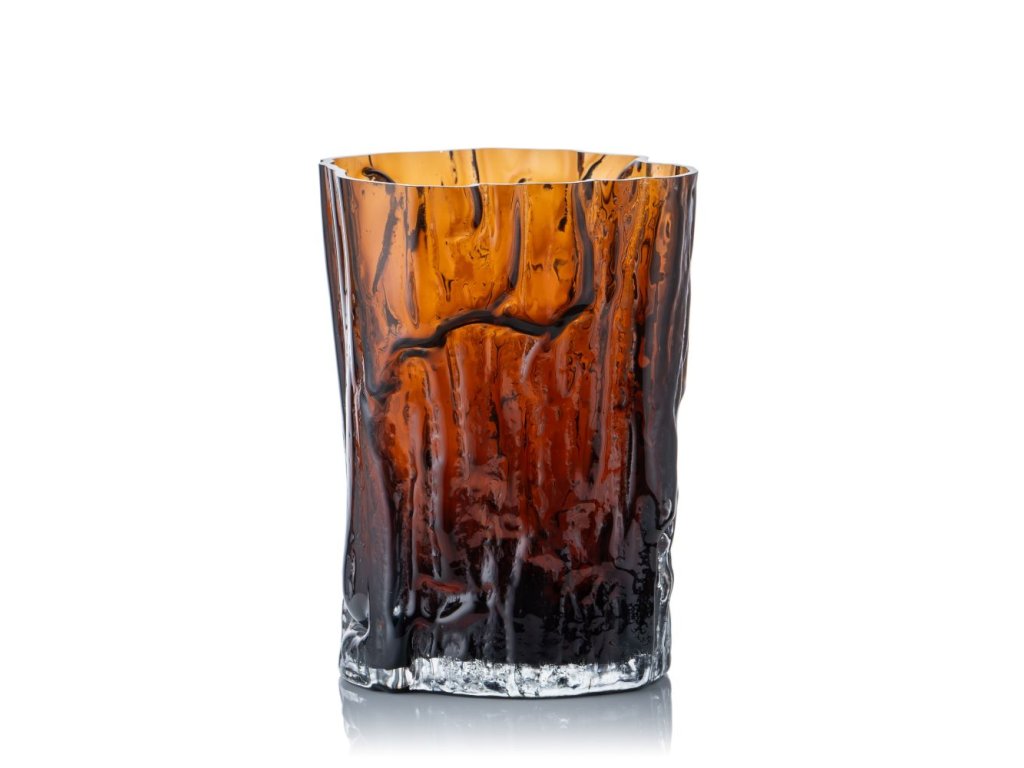 Skleněná váza Forest silence z hutního skla - kolekce WOOD v tmavší topasové barvě