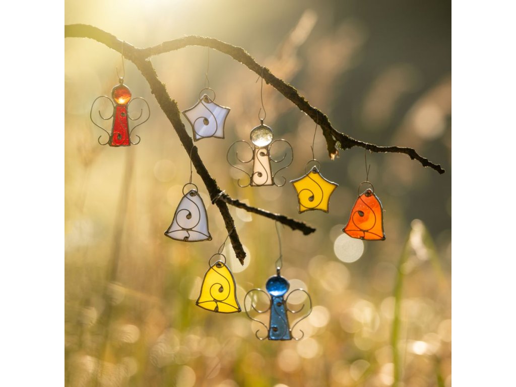 Anděl je malý skleněný kousek, vyrobený technikou Tiffany, který ve vhodném umístění na světle, vytváří jemnou kombinaci světla a barev.