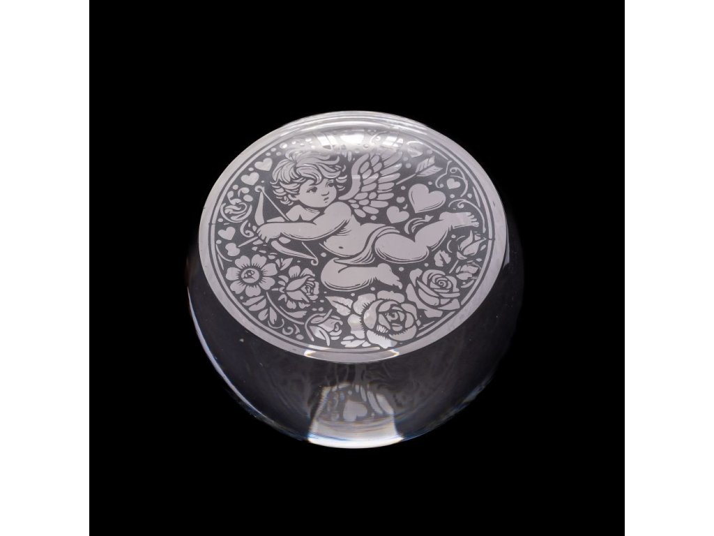 Skleněné těžítko s motivem Amora – něžný symbol lásky a romantiky