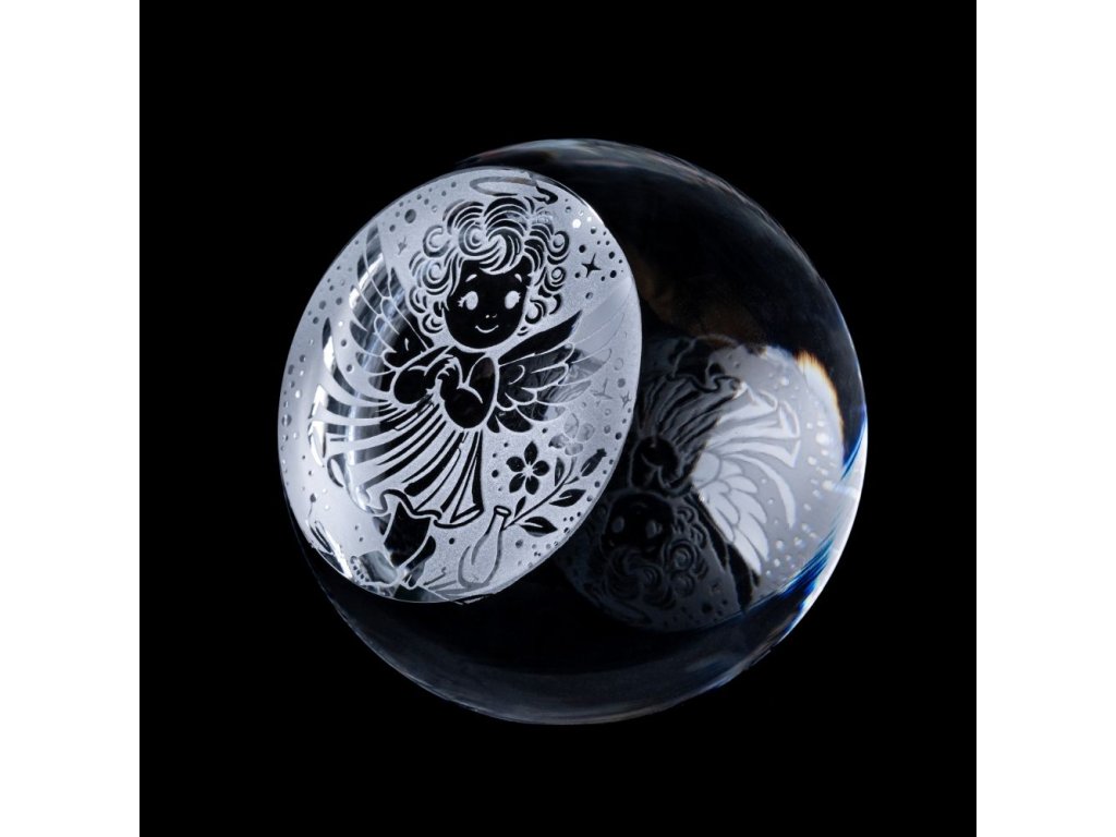 Barva křišťál a vybroušená ploška s motivem anděla.