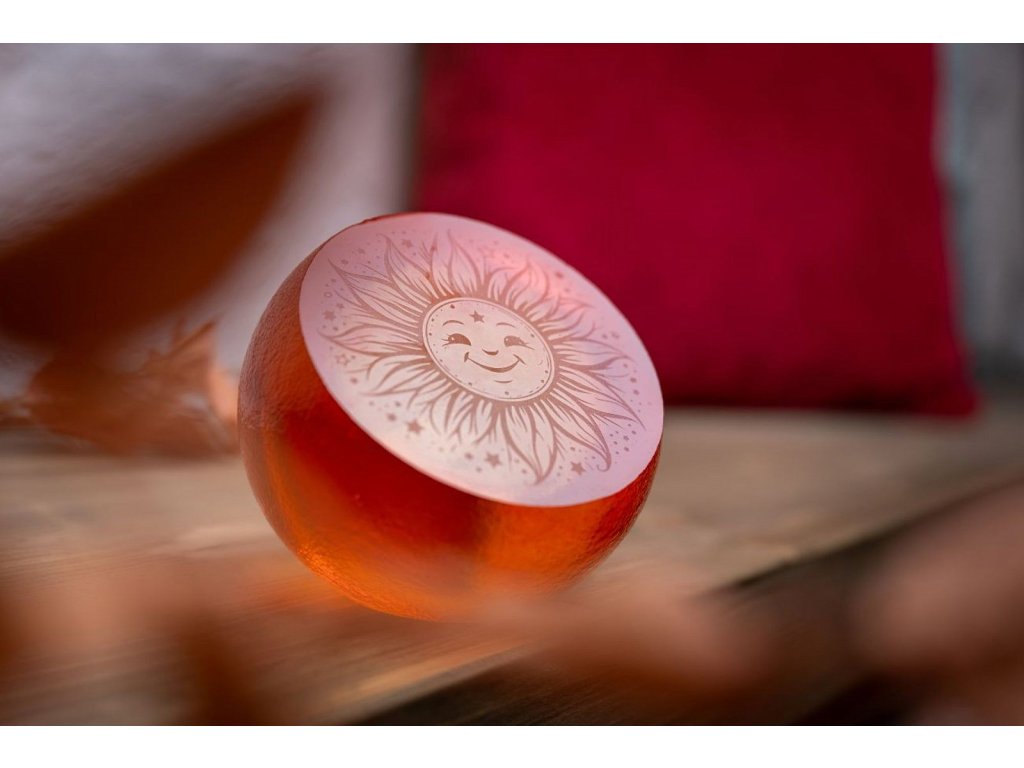 Hledáte malý kousek radosti, který vám každý den rozzáří pracovní stůl nebo domov? Toto skleněné těžítko s vypískovaným motivem usmívajícího se slunce přináší pozitivní energii, teplo a harmonii kamkoliv ho postavíte.