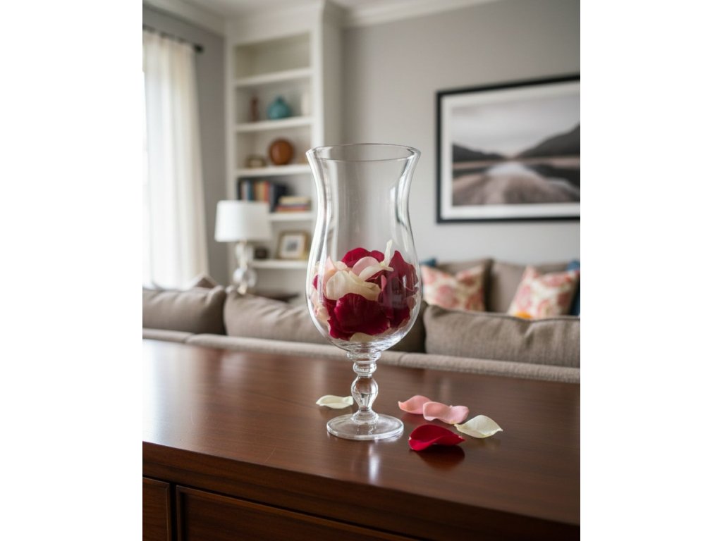 Skleněný pohár z čirého skla v barvě křišťálu je víc než jen nádobou – je pozvánkou k tvořivosti. Jeho čisté linie a nadčasový lesk se hodí jak pro slavnostní přípitek s vínem, tak jako stylový doplněk vašeho interiéru. Naplňte ho korky ze vzácných lahví, okvětními lístky růží nebo drobnými suvenýry z cest – mušličkami, kamínky, vzpomínkami.