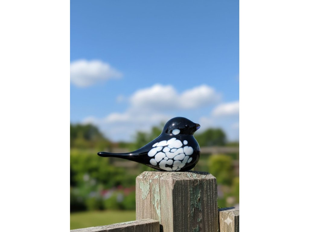 Skleněný ptáček Černo bílý
