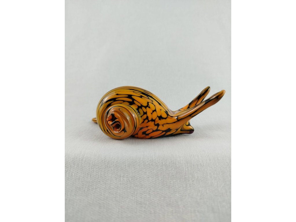 Skleněný šnek černý s oranžovými bročky Doprodej
