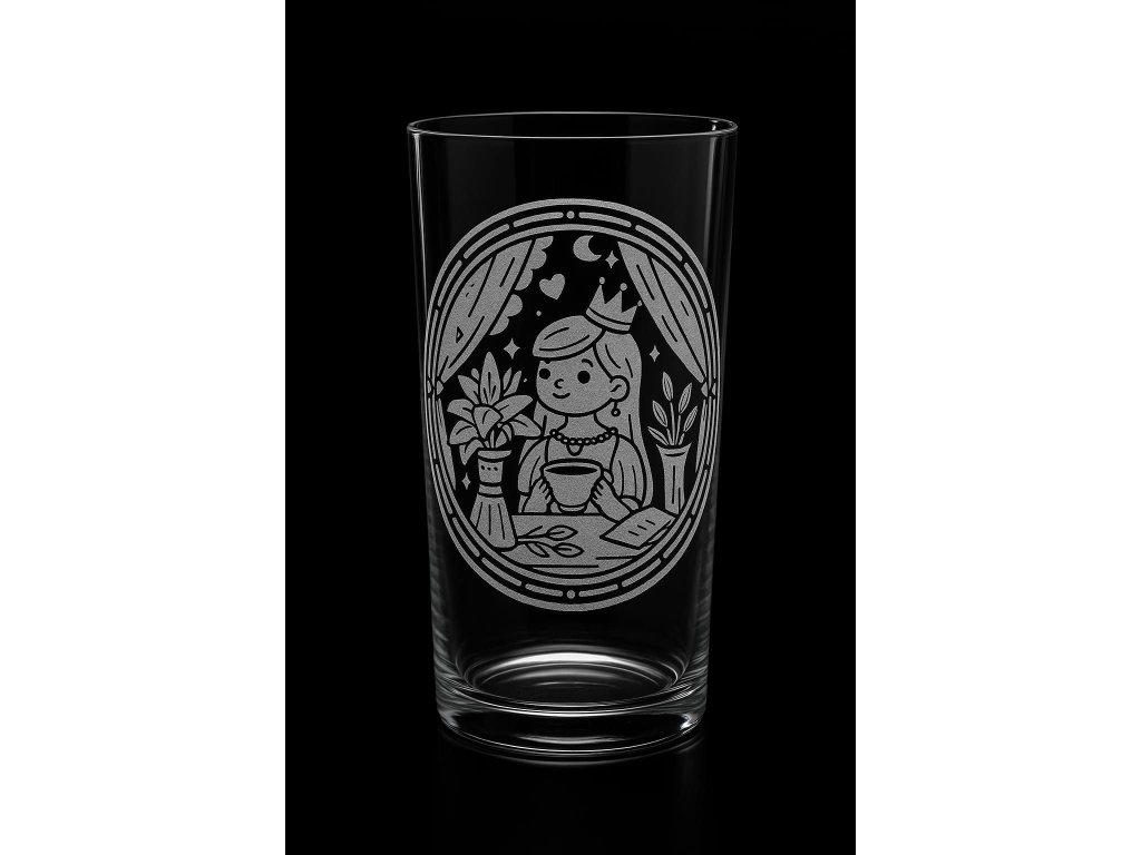 Kdysi dávno, v království třpytivém jako ranní rosa, vznikla sklenice hodná královského stolu. Její křišťálová čistota ukrývá kouzlo pohádek, zatímco jemně vypískovaný obrázek princezny přináší do každého doušku špetku kouzla.